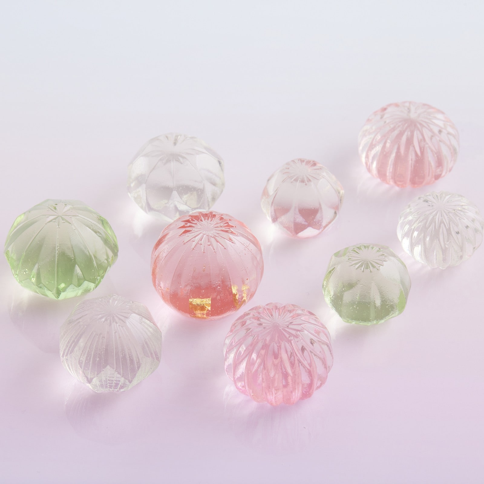 琥珀糖は砂糖の再結晶化により透明度が少しずつ失われていきますが、品質には問題はなくその変化もお楽しみいただけます。アートピースを食べる、魔法のようなお菓子です。